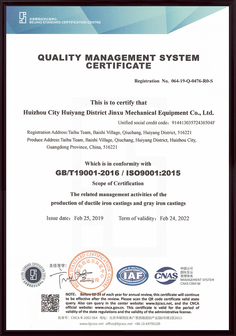乐鱼网页版(原名深圳金泉铸造厂),始建于1992年2月,公司坐落于惠州市惠阳区秋长白石大湖工业区,是一家集模型、铸造、机械加工于一体的综合型企业,主要生产高强度高韧性球墨铸铁、灰铸铁及铸铜、铸铝等各种材质及牌号铸件。